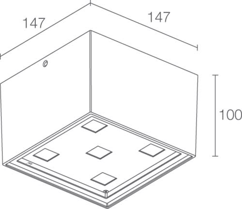 Plafoniera da esterno; su superficie (soffitto); Potenza: 18W. Alimentazione: 230Vac; Flusso sorgente: 1308 lm. 4000K. 30°. Colore Grigio