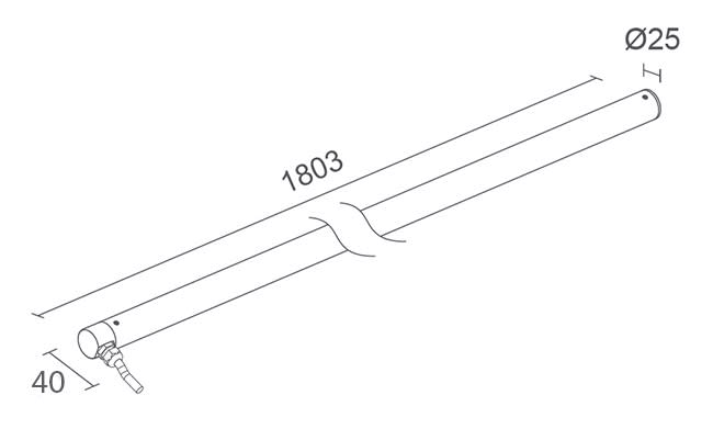 Profilo lineare da esterni e immersione; versione diffusa: 37W - 24Vdc; 132 mid-power LED; RGB; CRI: >80; ottica: diffusa; versione RGB: 138 low power LED full colour; corpo in acciaio inox AISI 316L; versione RGB: 37W - 24Vdc; incluso cavo in neoprene di 5 m H05RN-F 2x0,75 Ø6,3 mm, RGB: incluso cavo in FEP+PCP (equivalente a H05RN-F) di 5 m 4x0,50/0,50 Ø6,3 mm, schermo in policarbonato; PCB tropicalizzati; NTC a bordo per il controllo della temperatura; temperatura di esercizio: -10°C +45°C; IPS integrato nel pressacavo; grado di protezione contro i liquidi e i corpi solidi: IP68; grado di resistenza all'impatto IK10; sicurezza fotobiologica: gruppo rischio 1 secondo EN62471:2006; montaggio con clips orientabili, viti e tasselli; disponibili clips antivandalo; classe di isolamento III; peso 1,20kg; dimensioni ø25x1803mm; collegamento in parallelo; dimmerazione disponibile mediante utilizzo di dimmer in linea 24Vdc; accessori: clips antivandalo WM0502; clips: WM0501.