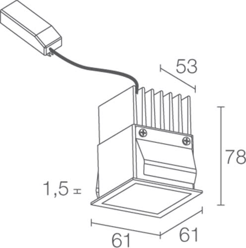 Incasso downlight da interno; a incasso (soffitto); Potenza: 5,5W. Alimentazione: 230Vac. Flusso sorgente: 644 lm. 3000 K. Colore Bianco. Quadrato