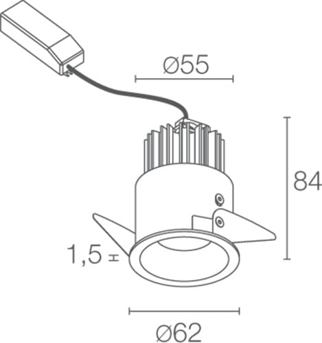 Incasso downlight da interno; a incasso (soffitto); Potenza: 11W. Alimentazione: 230Vac. Flusso sorgente: 1251 lm. 4000 K. Colore Bianco. Dimmerabile 1-10V