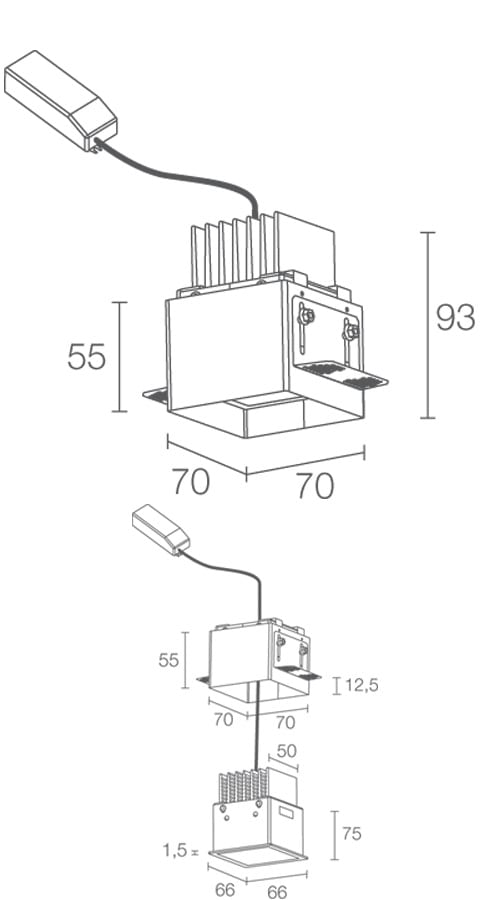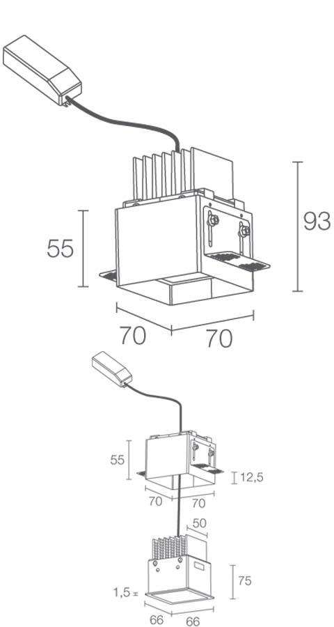 Incasso downlight da interno; a incasso (soffitto); Potenza: 5,5W. Alimentazione: 230Vac. Flusso sorgente: 644 lm. 3000 K. Colore Bianco