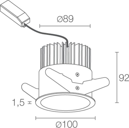 Incasso downlight da interno; a incasso (soffitto); Potenza: 11W. Alimentazione: 230Vac. Flusso sorgente: 1251 lm. 3000 K. Colore Bianco. Diffuso.Tondo