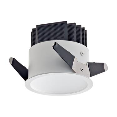Apparecchio a incasso da interno; 18,5W - 230Vac 50Hz; 1 power LED Multi-chip; 3000K; CRI: >80; luce diffusa; flusso totale: 1431 lm (3000K); corpo in alluminio lega EN AW 6012 con trattamento di anodizzazione nera, cornice in lamiera verniciata bianco opaco Ral9003, schermo in PMMA ad alta riflettanza; finitura: bianco, grigio, nero; temperatura di esercizio: 0°C +45°C; grado di protezione contro i liquidi e i corpi solidi: IP40, IP44 installato; sicurezza fotobiologica: gruppo rischio 1 secondo EN62471:2006; montaggio a incasso con molle o con cassaforma WC3106; classe di isolamento II; peso 0,50kg; dimensioni Ø99x90mm; foro d'incasso Ø90mm; volume d'ingombro Ø190x160mm; collegamento 230Vac 50Hz, cablato all'alimentatore con 30cm di cavo; dimmerazione disponibile mediante PUSH; in dotazione: alimentatore cablato, ad alta efficienza e PFC attivo; dimensioni alimentatore: 168x37x33mm, 103x67x22mm (1-10V + PUSH), 207x42x31mm (DALI + PUSH); accessori disponibili: cassaforma WC3106.