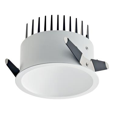Apparecchio a incasso da interno; 24,5W - 230Vac 50Hz; 1 power LED Multi-chip 1-10V; 3000K; CRI: >80; luce diffusa; flusso totale: 1750 lm (3000K); corpo in alluminio lega EN AW 6012 con trattamento di anodizzazione nera, cornice in lamiera verniciata bianco opaco Ral9003, schermo in PMMA ad alta riflettanza; finitura: bianco; temperatura di esercizio: 0°C +45°C; grado di protezione contro i liquidi e i corpi solidi: IP40, IP44 installato; sicurezza fotobiologica: gruppo rischio 1 secondo EN62471:2006; montaggio a incasso con molle; classe di isolamento II; peso 0,70kg; dimensioni Ø128x95mm; foro d'incasso Ø117mm; volume d'ingombro Ø220x160mm; collegamento 230Vac 50Hz, cablato all'alimentatore con 30cm di cavo; dimmerazione disponibile mediante PUSH; in dotazione: alimentatore cablato, ad alta efficienza e PFC attivo; dimensioni alimentatore: 168x37x33mm, 125x79x22mm (1-10V + PUSH), 125x79x22mm (DALI + PUSH).