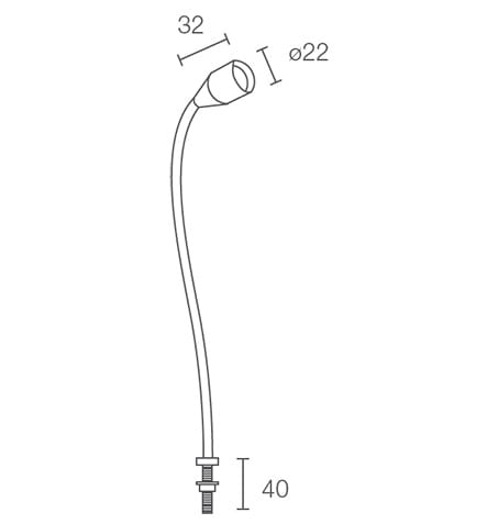 Wall 8.0 - Lampada da lettura da interno; su superficie (mensola max 30 mm); corpo in alluminio, stelo in ottone; finiture: cromato; 1 power LED; 2W - max 500mA; incluso cavo in PVC di 0,50 m FROR 2x0,35 Ø3,5 mm; collegamento in serie; ottica: 25°; colore LED: bianco - 3000K; grado di protezione: IP40; temperatura di esercizio: 0°C +45°C; sicurezza fotobiologica: gruppo rischio 1 secondo EN62471:2006; classe di isolamento III; peso 0,16 kg, dimensioni: ø22x32mm, stelo ø8x400 mm. LED bianco 2W 103 lm 3000K 500mA 25°.