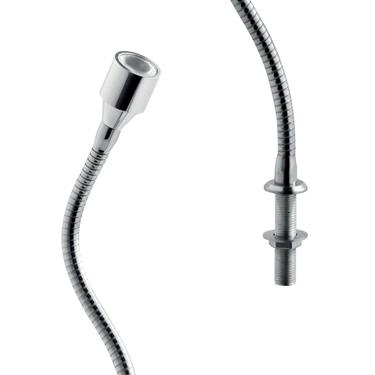 Lampada da lettura; 2W - 350/500mA; 1 power LED; 5000K; CRI: 75÷85; ottiche: 10°; corpo in alluminio, stelo in ottone, ottiche in PMMA; finitura: trattamento di cromatura; temperatura di esercizio: -10°C +45°C; grado di protezione contro i liquidi e i corpi solidi: IP20; sicurezza fotobiologica: gruppo rischio 1 secondo EN62471:2006; montaggio con vite e dado M10x1, foro Ø11mm, spessore massimo di installazione 25mm; classe di isolamento III; peso 0,16kg; dimensioni Ø22x31mm, stelo flessibile Ø8x400mm; collegamento in serie, con cavo 0,5m tipo Fror 2x0,35.