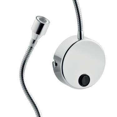 Lampada da lettura; 1W - 230Vac 50Hz; 1 power LED; 2700K; CRI: 75÷85; ottiche: 10°; flusso totale: 103 lm; corpo in alluminio, schermo in PMMA; finitura: nichel satinato; temperatura di esercizio: 0°C +45°C; grado di protezione contro i liquidi e i corpi solidi: IP20; sicurezza fotobiologica: gruppo rischio 1 secondo EN62471:2006; montaggio con viti e tasselli; classe di isolamento I; peso 0,34kg; dimensioni ø22x31, stelo flessibile ø8x400mm, piastrina ø78mm; collegamento 230Vac 50Hz, con cavo con morsetto di connessione; alimentatore integrato.