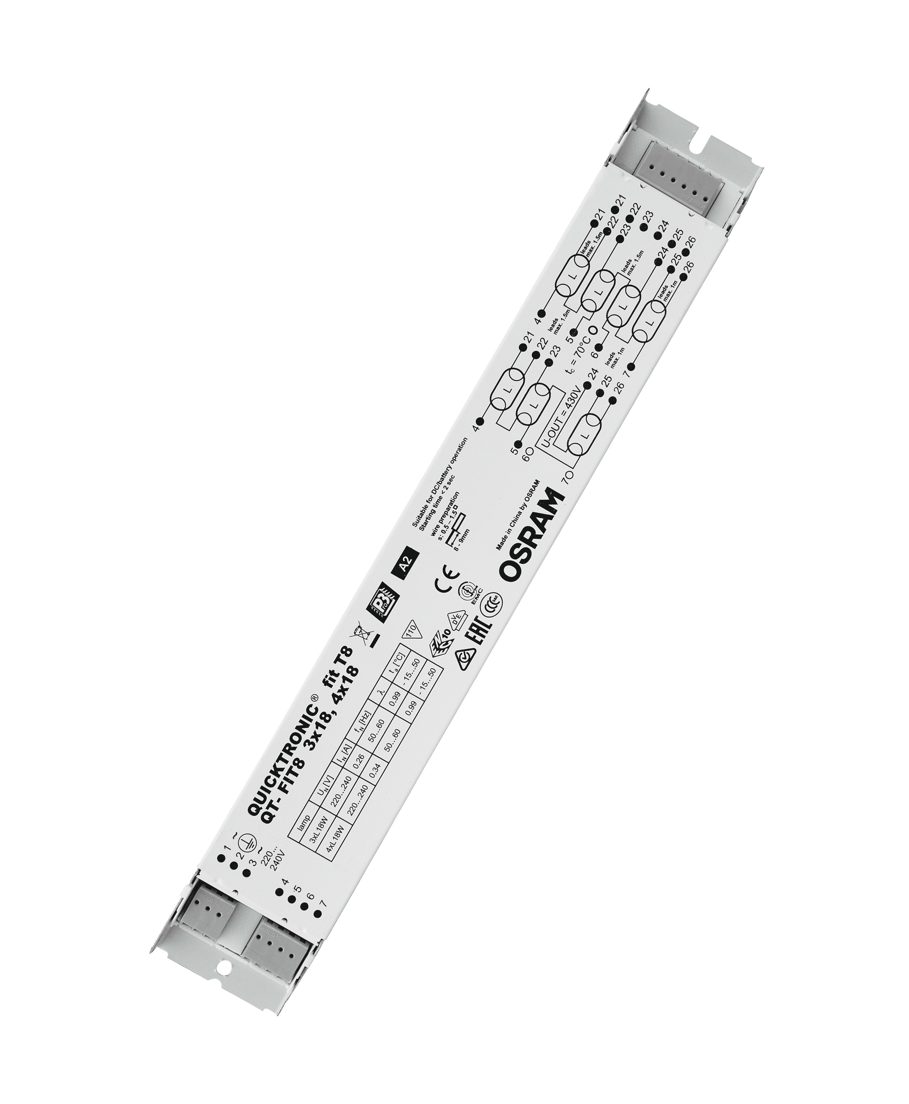 LEDVANCE - Alimentatore Elettronico, OSRAM QUICKTRONIC FIT 8 3X18,4X18, 220-240V. QTFIT834X18