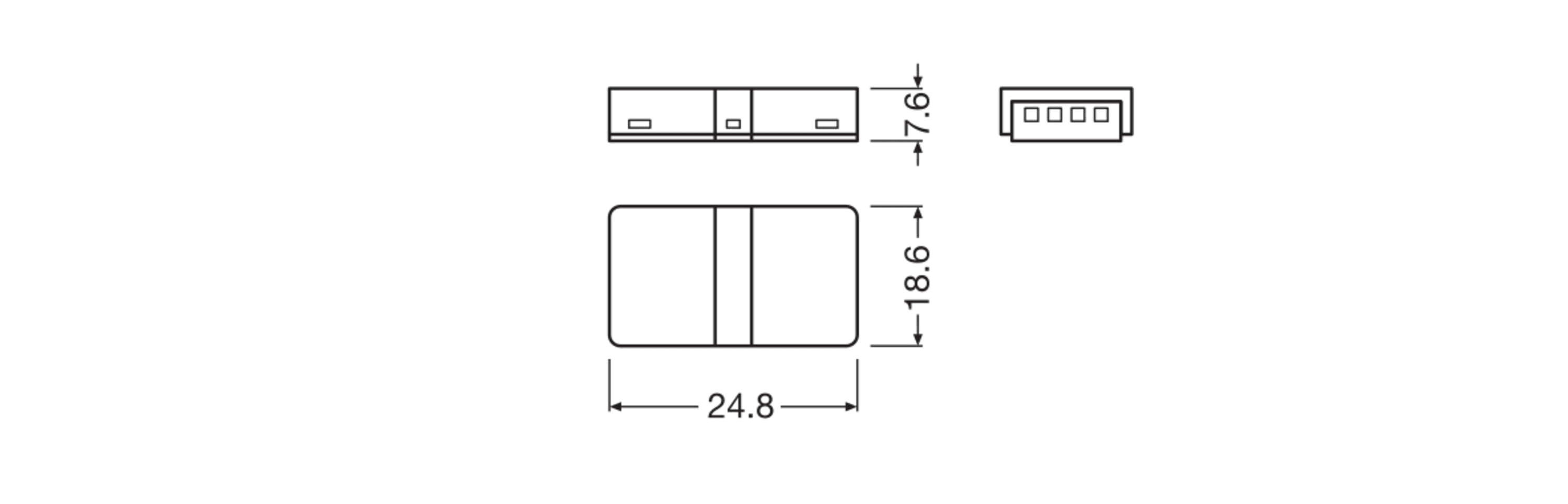 Connettori per strisce LED RGBW. Vantaggi del prodotto: Facile installazione del connettore senza bisogno di cablaggio manuale. Installazione senza attrezzi. Aree di applicazione: Apparecchi di illuminazione per interni. Adatto per applicazioni interne ed esterne (IP67).