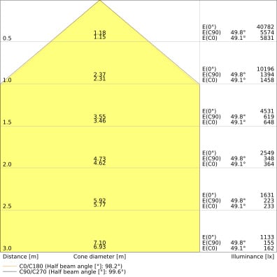 Angolo del fascio luminoso:
