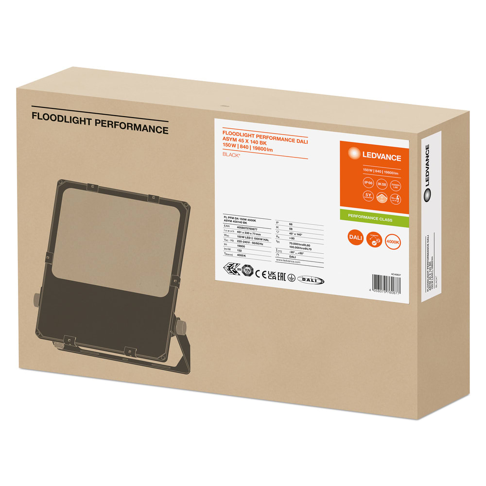 LEDVANCE - Faretto LED Performance 150W 4000K, Asimmetrico 45x140, Nero FL150840B45ASDA