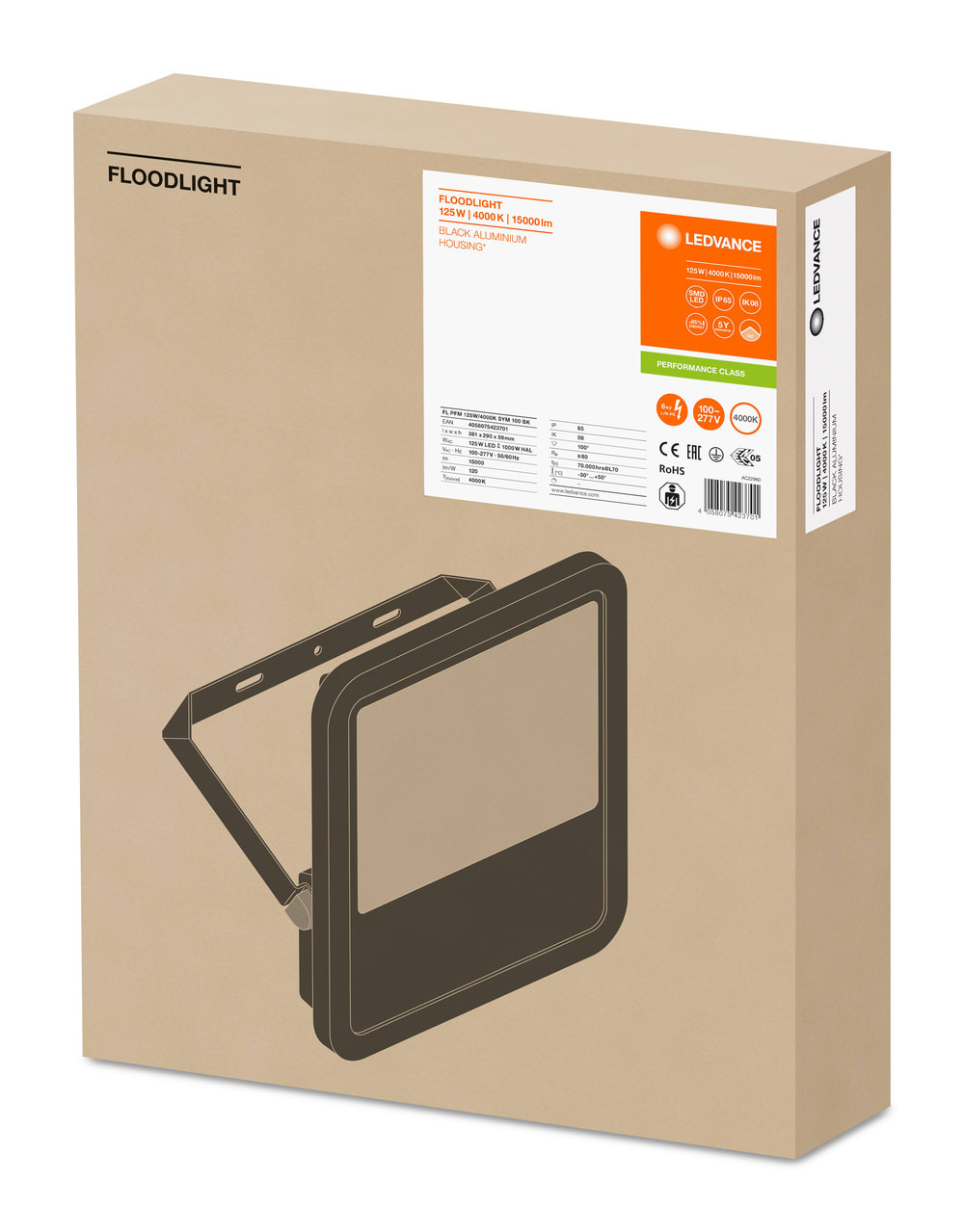 LEDVANCE - Faretto LEDV 125W 4000K, Simmetrico 100 BK FLOOD125840BG3