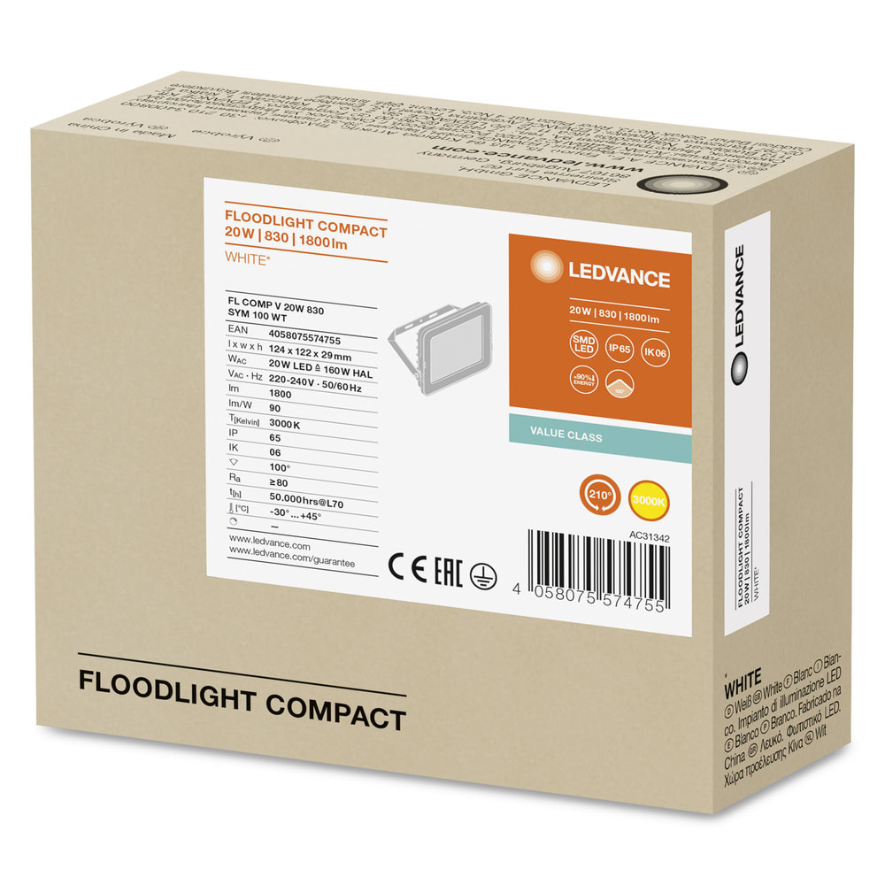 LEDVANCE - Faretto LEDV, 20W, 830, 100W, Luce Bianca FLCOMP20830W