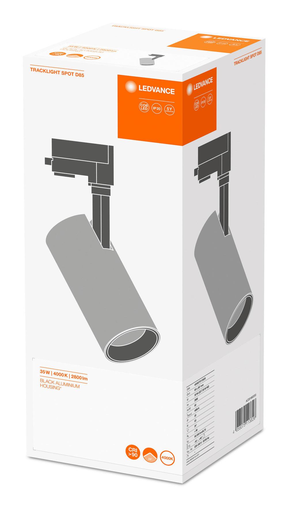 LEDVANCE - Faretto LEDV, 35W, 4000K, 90RA, Nero, per Binari, TRACK SP D85 TRKSPD8535840FLB