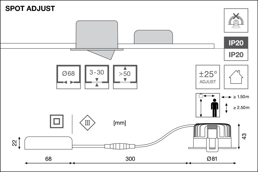 LEDVANCE - Faretto LEDV, Spot Adjust 8W 927 PS Dim IP20 WT SPADJ8927DWT