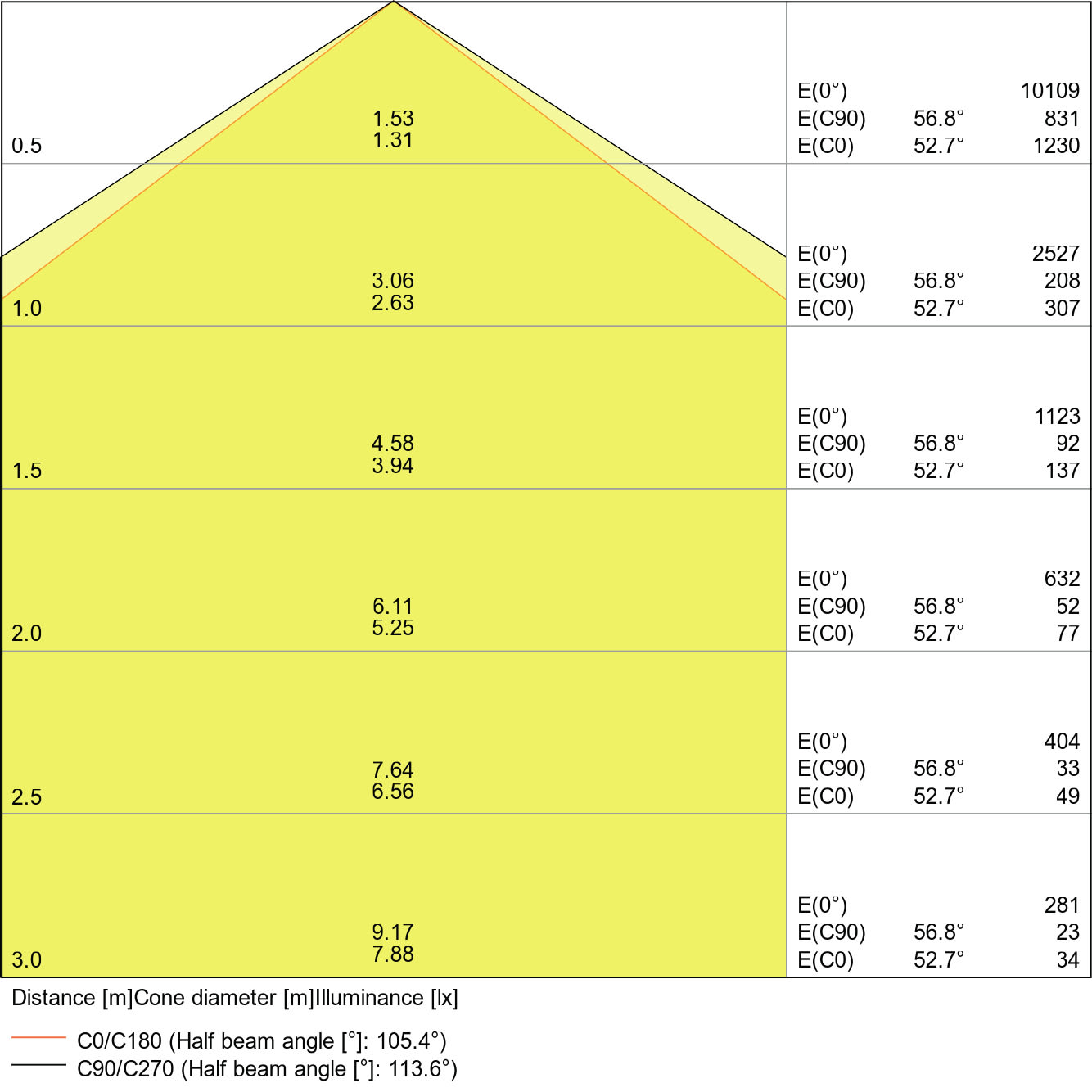 • Angolo del fascio luminoso: 105°