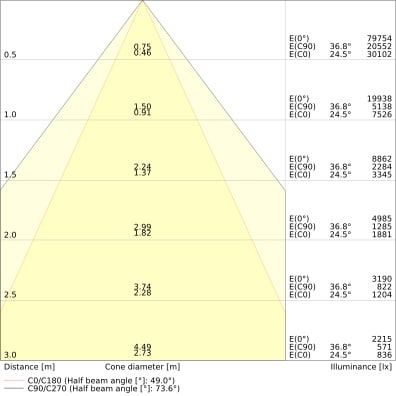 vita utile misurazioni L70/B50 a 25 °C - 100000 h