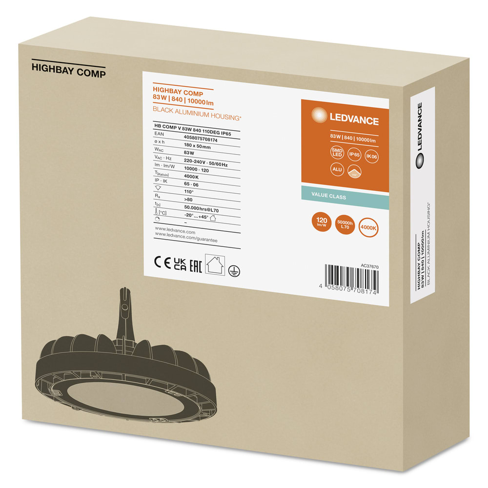 LEDVANCE - Lampada LEDV, Alta Luminosità, 83W, 840, 110°, IP65