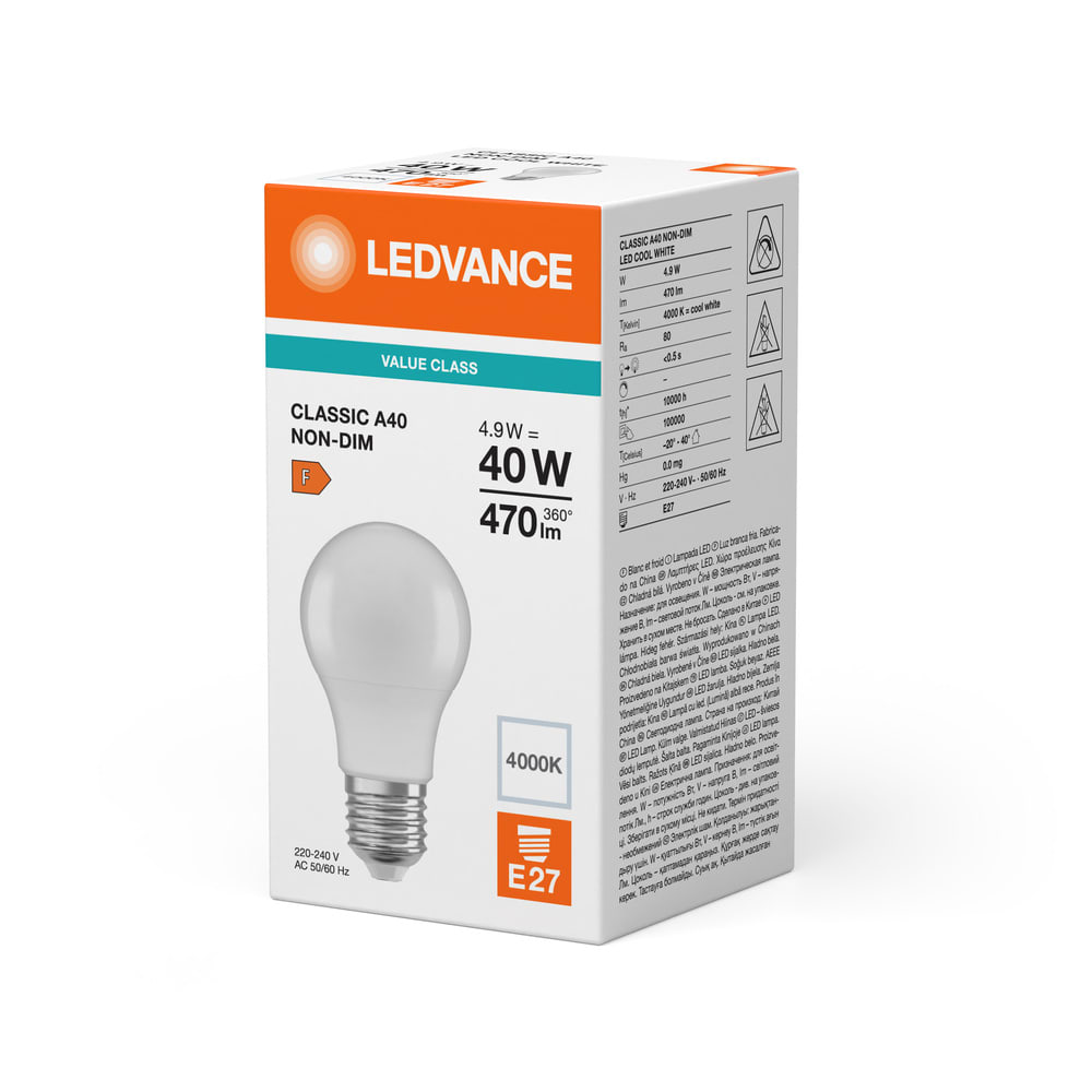 LEDVANCE - Lampadina LED, 4.9W 840, E27, Vetro Opaco VCA40840S1