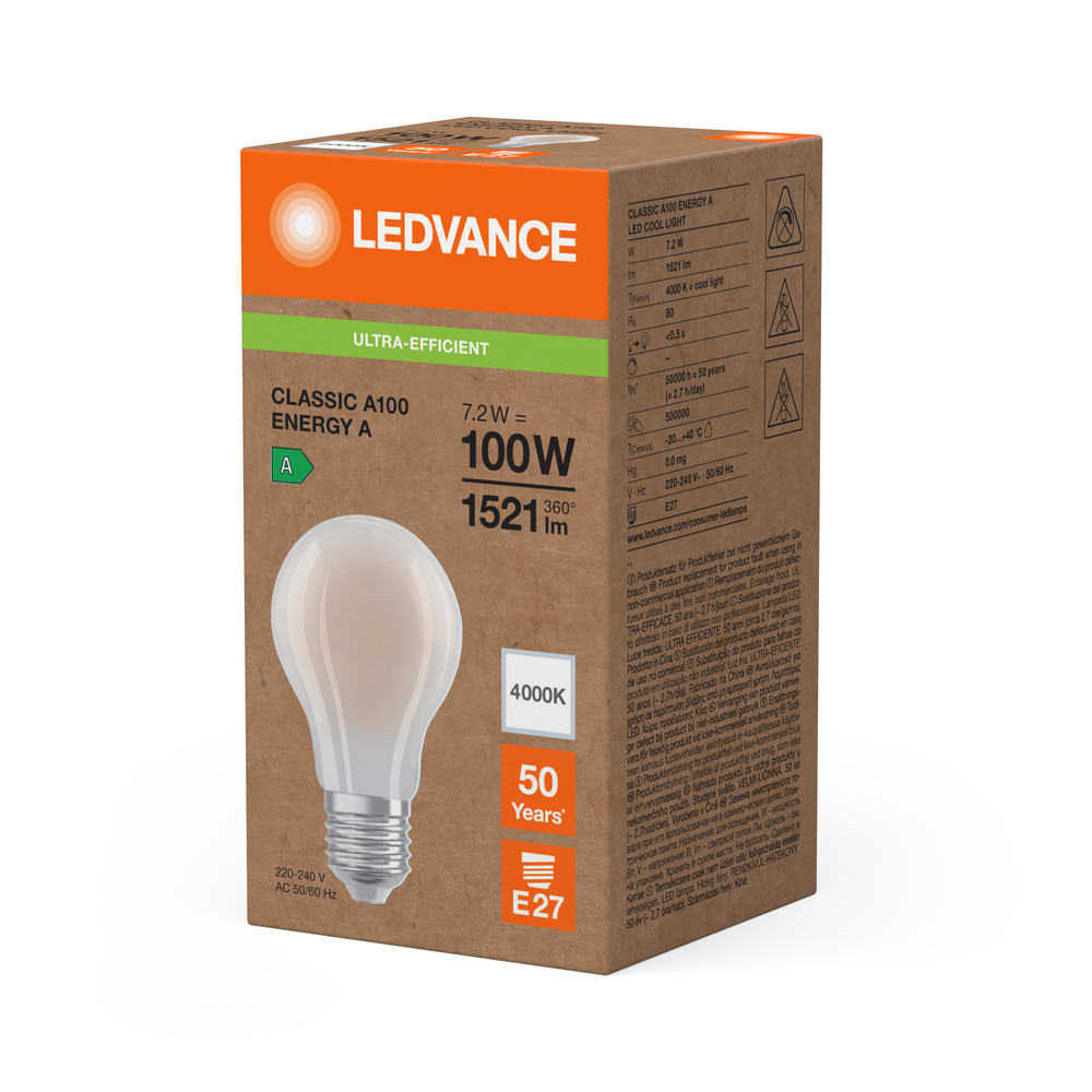 LEDVANCE - Lampadina LED, 7.2W, 840 Lumen, E27, Classe Energetica A SCA100840SEA2