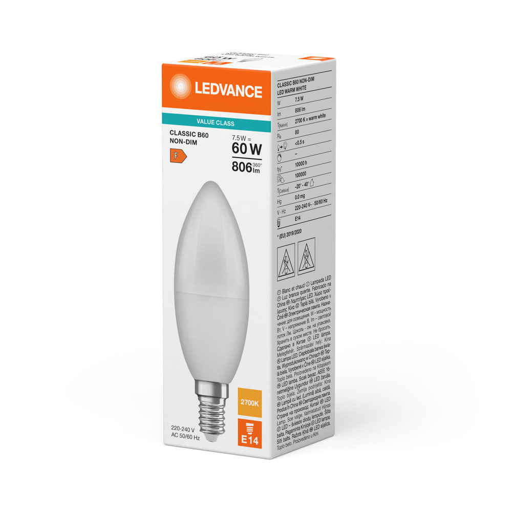 LEDVANCE - Lampadina LED, 7.5W, 827K, E14, Vetro Opaco