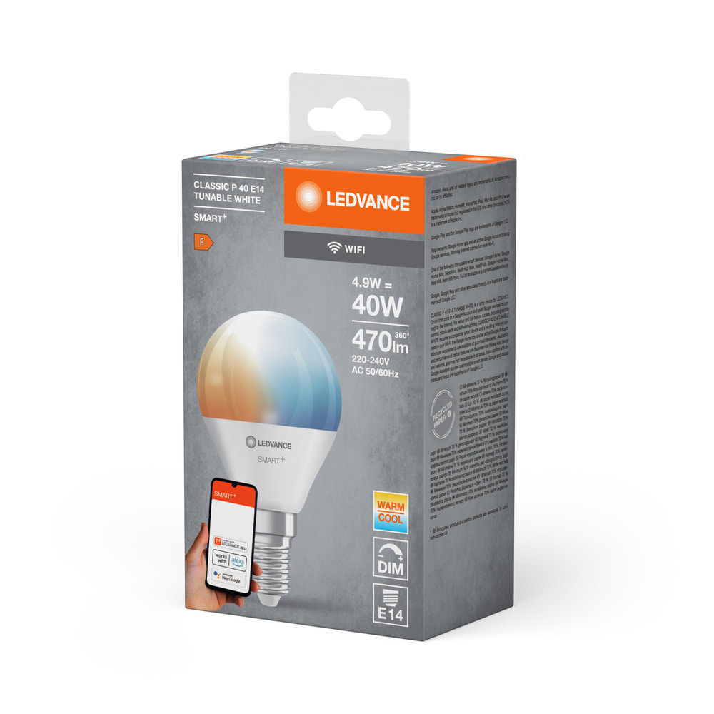 LEDVANCE - Lampadina Smart WiFi Mini, Bianco Regolabile, 4,9W, 230V, E14, Singola SMT778634WF