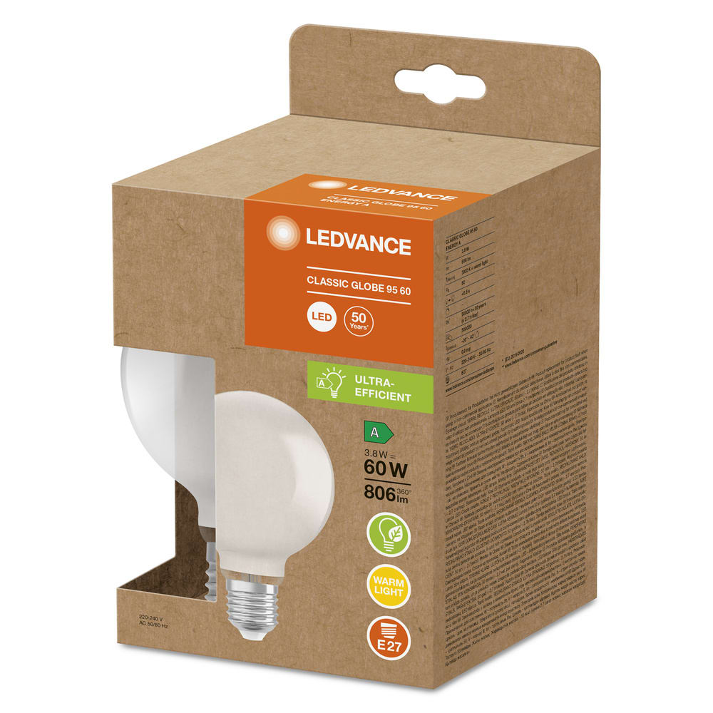 LEDVANCE - LED Classic Globe Energy Efficiency A 3.8W 830 Frosted E27 LEDG9560EELA FILFR LEDV.