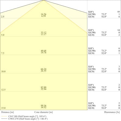 Angolo del fascio luminoso - 130 °
