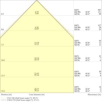 Angolo del fascio luminoso - 90 °