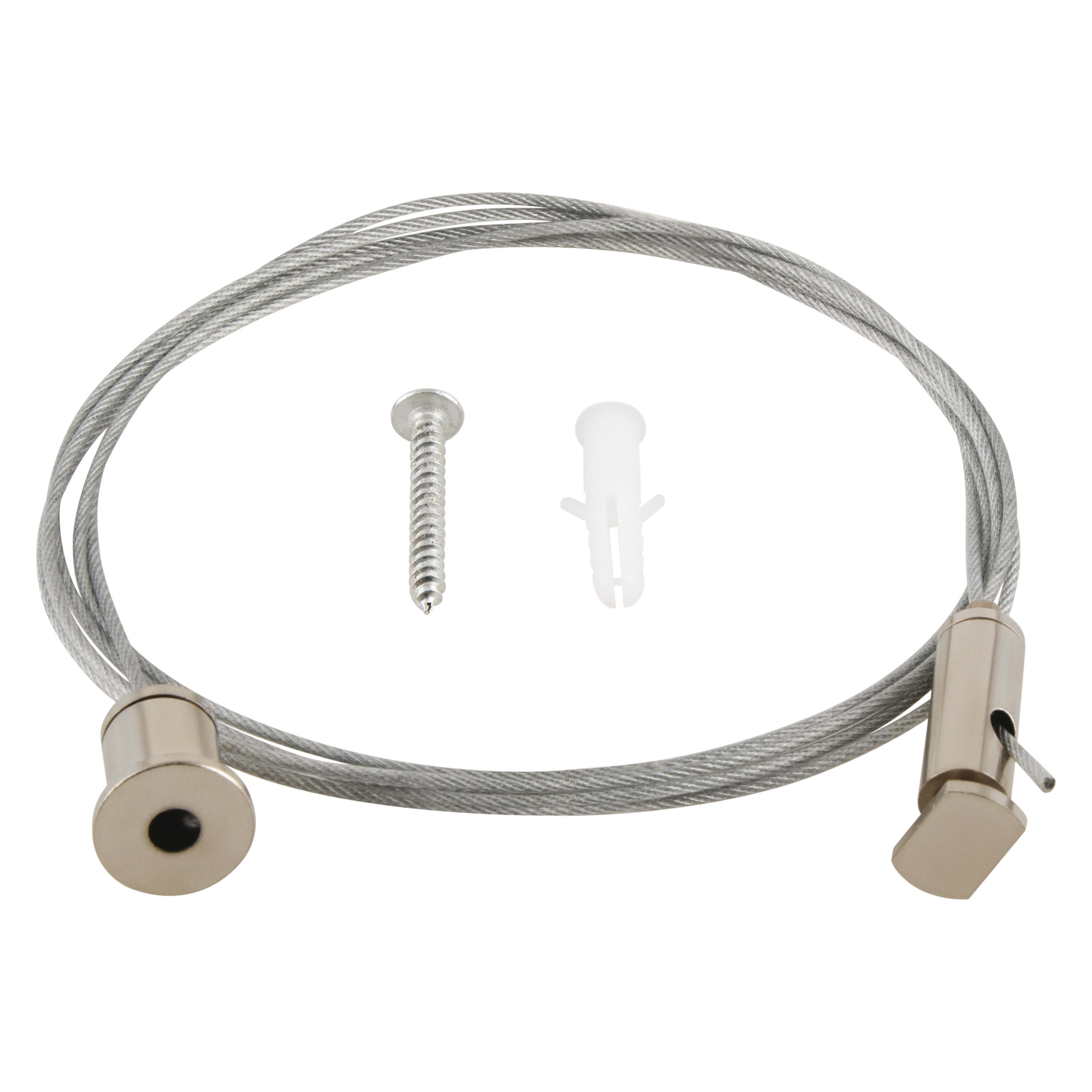 Accessori per profili larghi. Caratteristiche del prodotto: Solo filo di acciaio integrato (PW04/S-KIT/1,5M). Filo di acciaio integrato con conduttori elettrici (PW04/ES-KIT/1,5M). Vantaggi del prodotto: Installazione rapida e facile. Aree di applicazione: Apparecchi di illuminazione per interni.