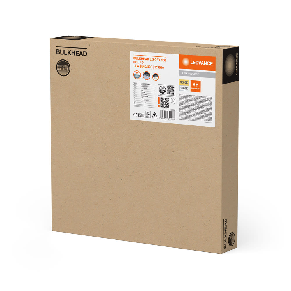 LEDVANCE - Sorgenti Luminose LEDV, Bulkhead Tondo, 300R 15W, 830 840 BLKH LE250R158384BLK