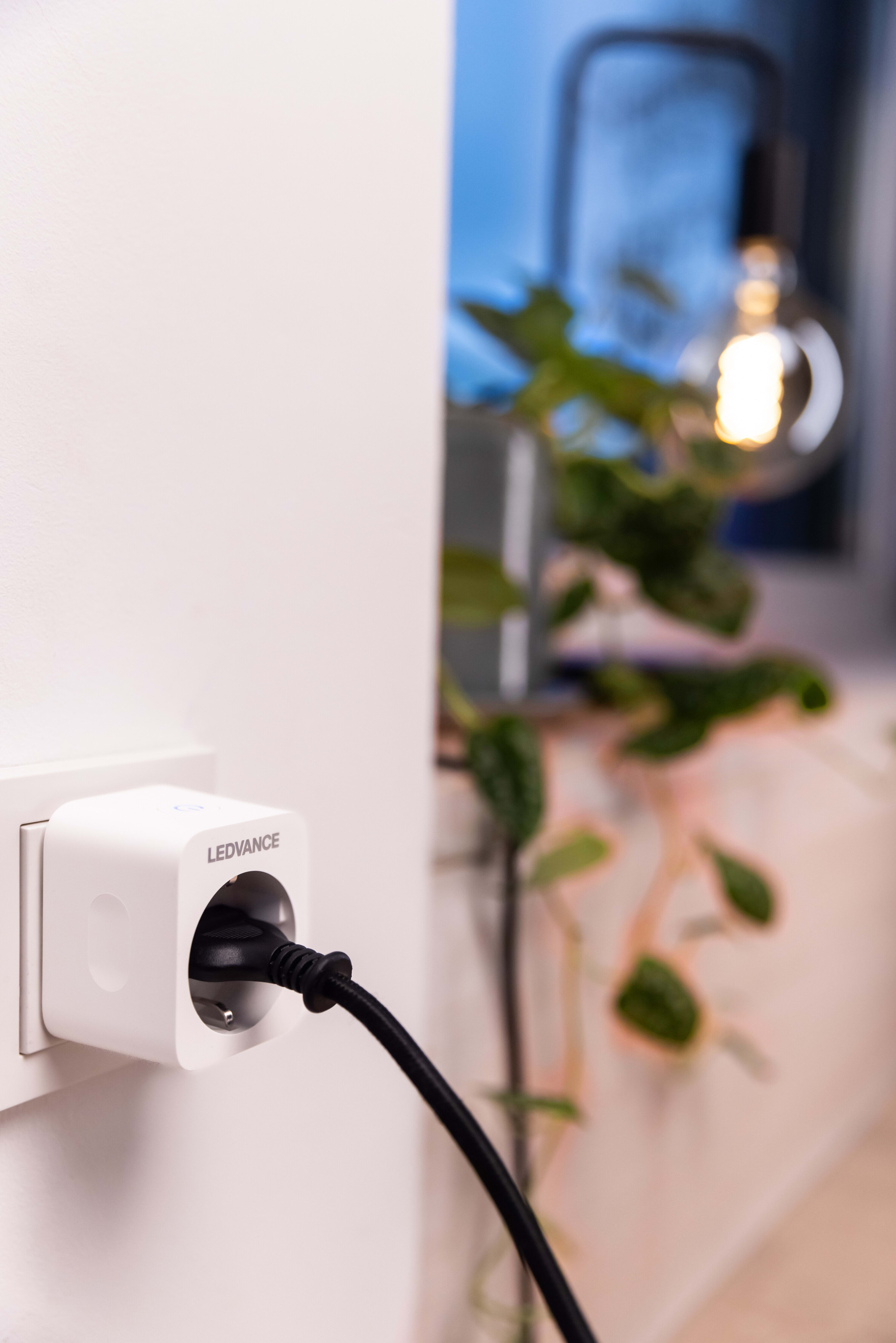 Spina con presa intelligente per controllare dispositivi non smart con tecnologia WiFi, abbinabile al telecomando. Caratteristiche del prodotto: Controllabile tramite l'app LEDVANCE SMART+ (con minimo Android 8.0 o iOS 14.0). Controllabile tramite LEDVANCE SMART+ telecomando WiFi. Elevata potenza di commutazione: fino a 2.300 W / 10 A. Protocollo di rete: WiFi (2,4 GHz). Contatore di energia. Pianificazione. Il controllo vocale funziona con Hey Google o Alexa". Vantaggi del prodotto: Integra le attrezzature elettriche convenzionali nei sistemi compatibili di Smart Home. Permette il cambiamento di sorgenti di luce tradizionali e altri device elettronici. Connessione semplice dei device elettrici attarverso attacchi standard. Monitora l'utilizzo di energia dei dispositivi collegati e tiene traccia del consumo energetico. Aree di applicazione: Ovunque i device non smart devono essere integrati in sistemi Smart Home compatibili. Apparecchiatura / Accessori: Per il controllo tramite l'app LEDVANCE SMART+ è necessario uno smartphone o un tablet (con minimo Android 8.0 o iOS 14.0). Consigli per la sicurezza: Scollegare i dispositivi che generano calore dalla rete, dopo l'uso, per evitare che si accendano accidentalmente.. Very high capacitive and inductive loads may in some cases lead to destruction of the device or reduction in the number of switching cycles.. Non utilizzare lo SMART+ Plug in insieme ad attrezzature mediche. Da collegare a un interruttore automatico (per max. 10 A). Prodotto in classe di protezione I. Tutte le parti metalliche dell'involucro elettricamente conduttive che possono assorbire tensione durante il funzionamento o durante la manutenzione in caso di guasto devono essere collegate in modo continuo al conduttore di protezione di terra..
