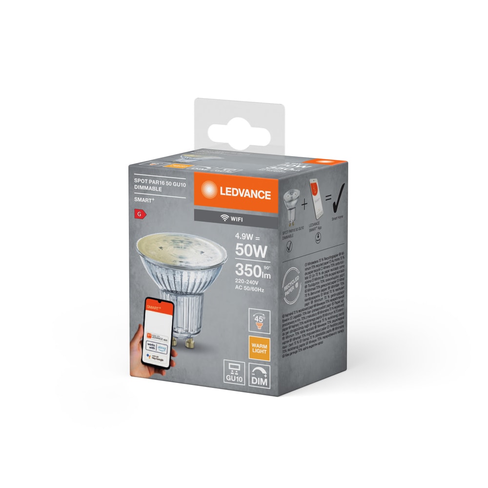 LEDVANCE - Spot Smart+ WiFi GU10 Dimmable 4,9W 2700K, 50 45°, 230V SMT485655WF