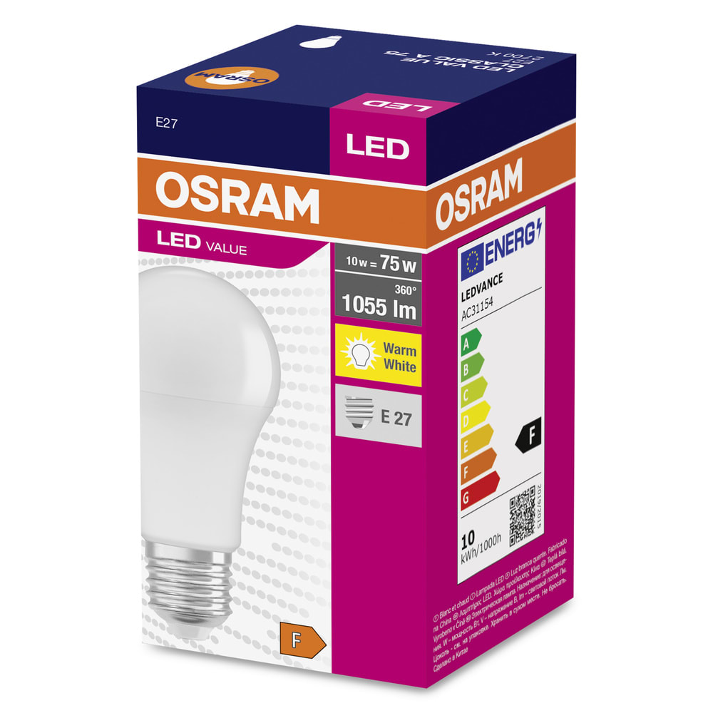 LEDVANCE - VALUECLA75 10W/827 230VFR E27 FS1 OSRAM VCA75827SG6