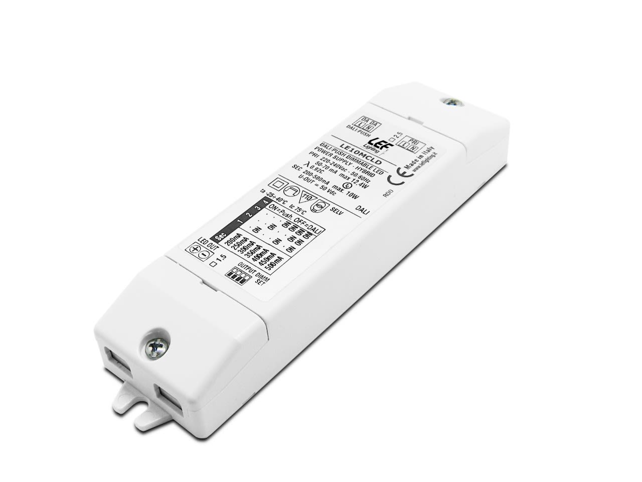 LEF LIGHTING - ALIMENTATORE LED MULTICORRENTE COSTANTE 200÷500mA 8÷10W COMANDO PUSH/DALI IP2 LE10MCLD