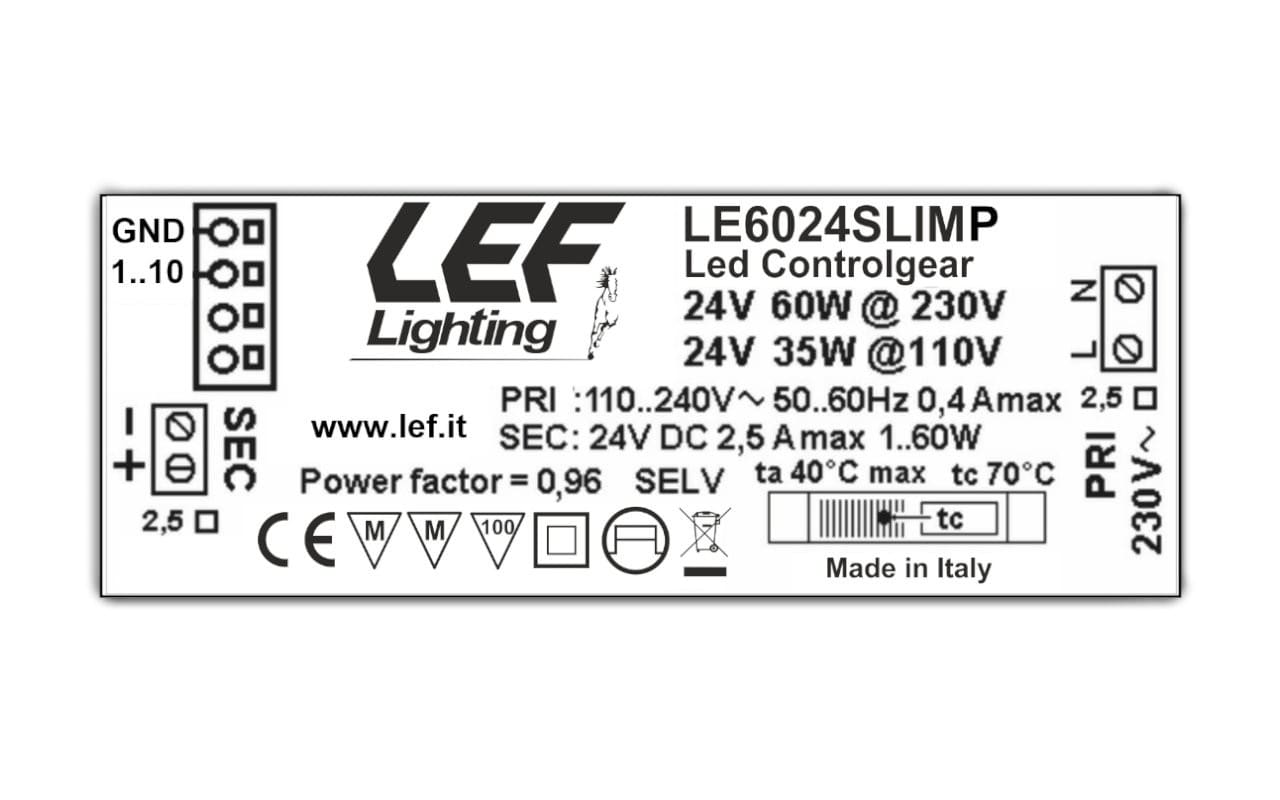 LEF LIGHTING - ALIMENTATORE LED TENSIONE COSTANTE 24Vdc 60W SLIM IP20 Dimmerabile 1-10V LE6024SLIMP