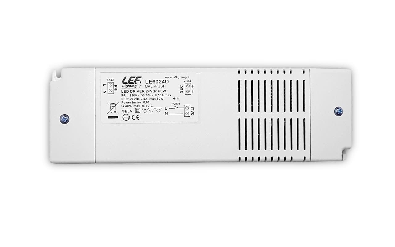 LEF LIGHTING - ALIMENTATORE LED TENSIONE COSTANTE 60W 24VDC IP20 DIMMERABILE PULSANTE/DALI LE6024D