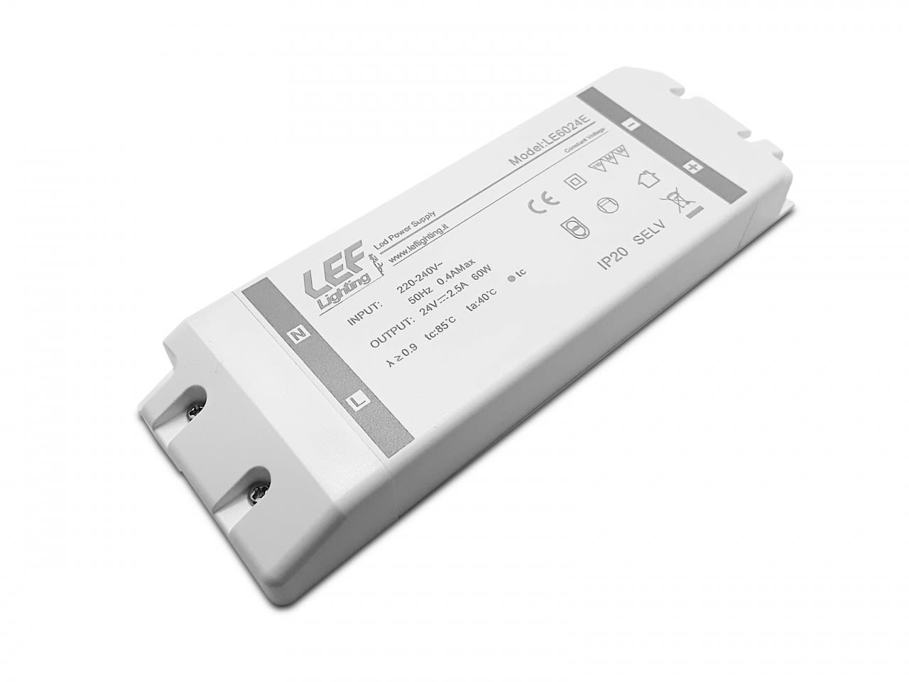 LEF LIGHTING - ALIMENTATORE LED TENSIONE COSTANTE 60W 24VDC IP20 ON/OFF LE6024E