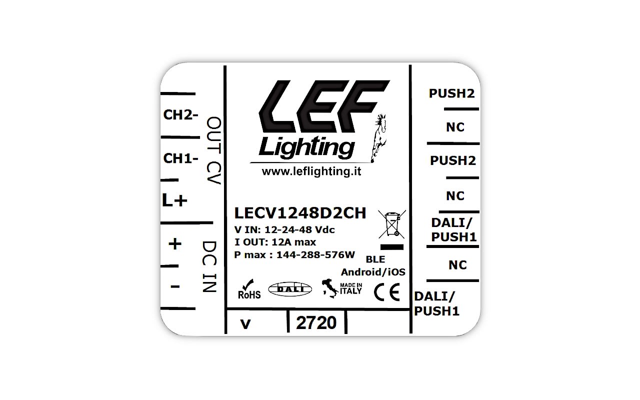 LEF LIGHTING - INTERFACCIA DIMMERAZIONE 2 CANALI SEPARATI x LED IN TENSIONE 12-24-48V 6A