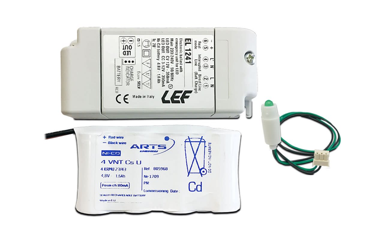 LEF LIGHTING - KIT di EMERGENZA per LED 1W e MODULI LED 12Vdc con batteria a pacchetto EL1241