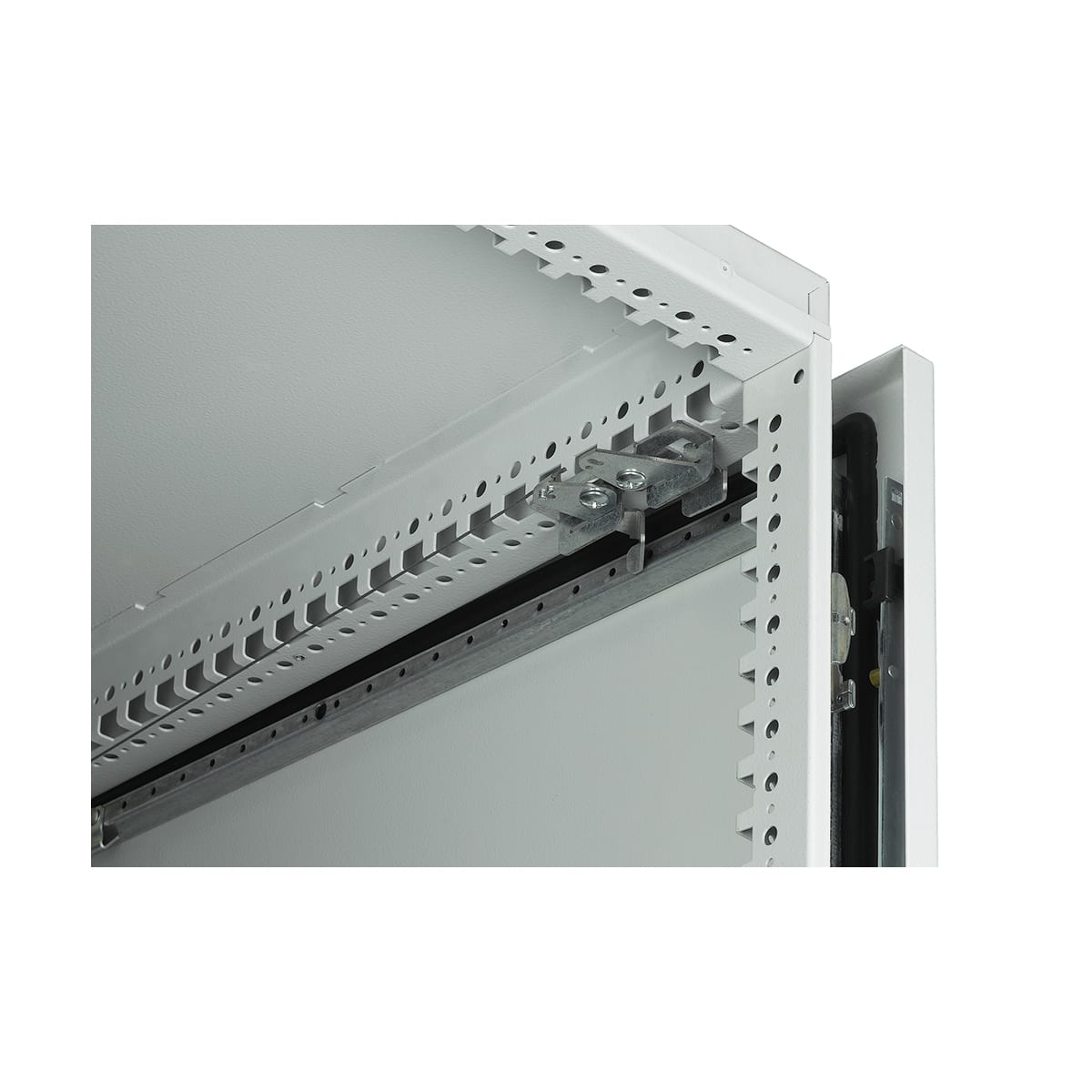 Interblocco meccanico per porta principale. Serve per interbloccare le porte tra di loro, identificando una porta la cui apertura comanda tutte le altre. E’ composto da due accessori, uno per la porta principale ed uno per ogni porta secondaria da comandare.