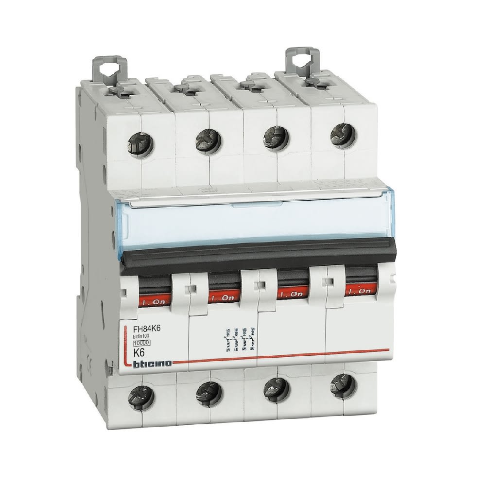 BTDIN100 - interruttore magnetotermico 4P curva K - In= 6A - Icn= 10kA - Vn= 400 Vac - 4 moduli
