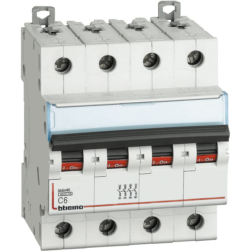 BTDIN45 - interruttore magnetotermico 4P curva C - In= 6A - Icn= 4,5kA - Vn= 400 Vac - 4 moduli