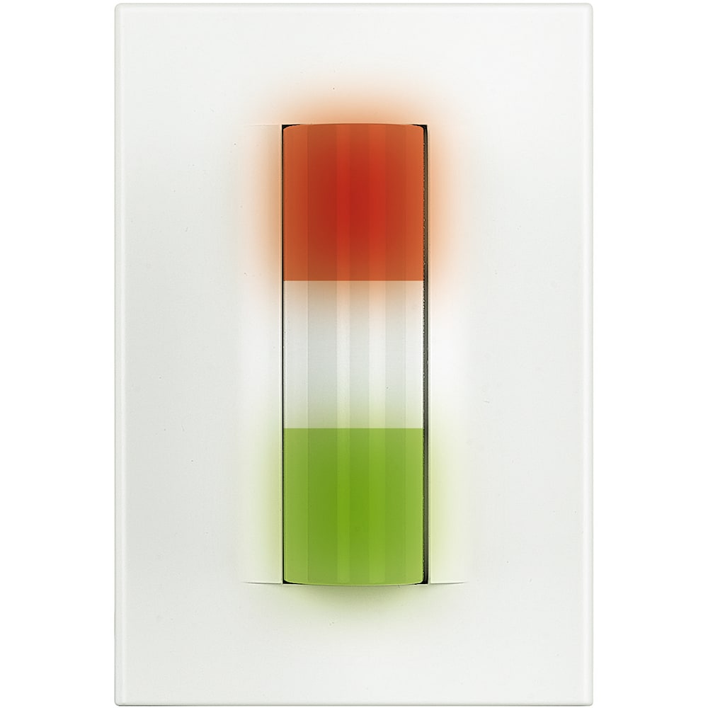 Lampada di segnalazione fuoriporta. Monoblocco 3 colori, illuminabile mediante LED per segnalazione chiamata, chiamate dal bagno e presenza infermiera. Consigliato per garantire la conformità alle norme VDE 0834-1 e 0834-2. 3 moduli Installabile in scatole da 2 e 3 moduli. Indicatore monoblocco con colore rosso, bianco, verde.