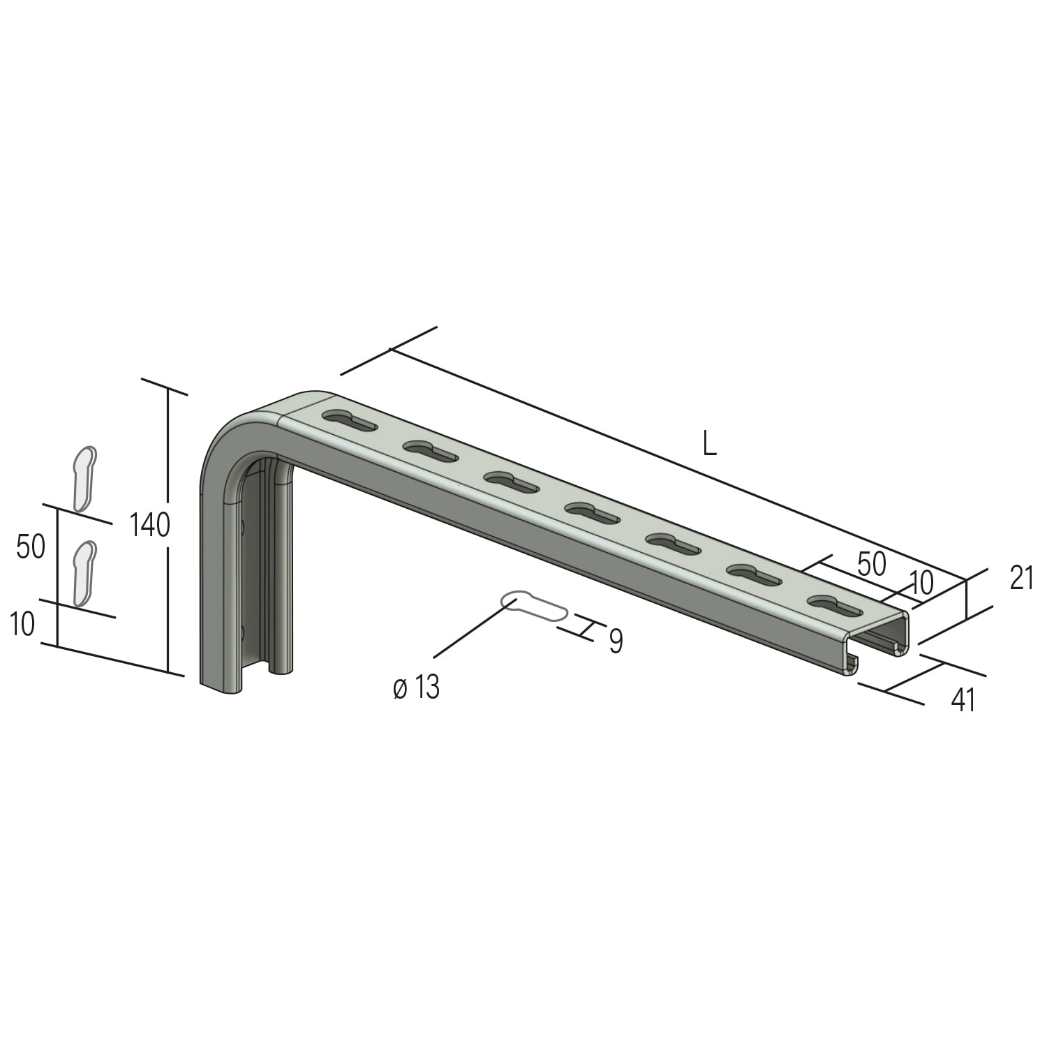 mensola a L CC21S 300 - 41x21mm - lunghezza 300mm - 316L