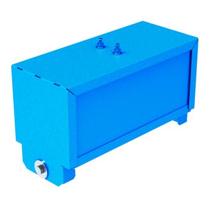 Testata di chiusura. Altezza: 100 mm. Larghezza: 100 mm. Finitura G: Acciaio smaltato blu Gamma-P.