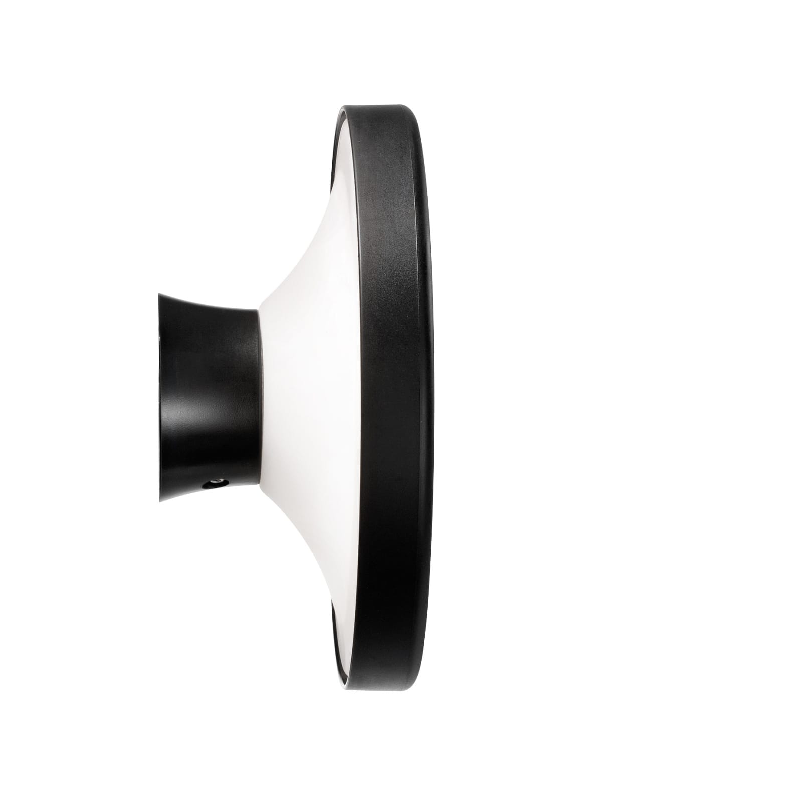 Lampada a parete a singola emissione per applicazione outdoor. La sorgente luminosa LED, di colore bianco caldo, con distribuzione luminosa Diffusa, è composta da 18 LED topled, con una CCT 3000 K ed un CRI 80, il flusso luminoso della sorgente è di 1350 lm, con un'efficienza nominale di 112.5 lm/W. Il corpo dell'apparecchio, realizzato in policarbonato, presenta una finitura di colore nero ral 9005, ottenuta tramite satinatura, il diffusore è prodotto in polietilene, la montatura è prodotta in policarbonato, con una finitura di colore nero ral 9005, ottenuta tramite satinatura. Il grado di protezione è IP65, il peso complessivo è di 0.760 kg. La potenza assorbita dall'apparecchio è di 12 W. L'apparecchio presenta una classe di isolamento II ed è installabile a parete, soffitto o pavimento. Conforme alla norma EN 60598-1 e alle relative prescrizioni particolari.