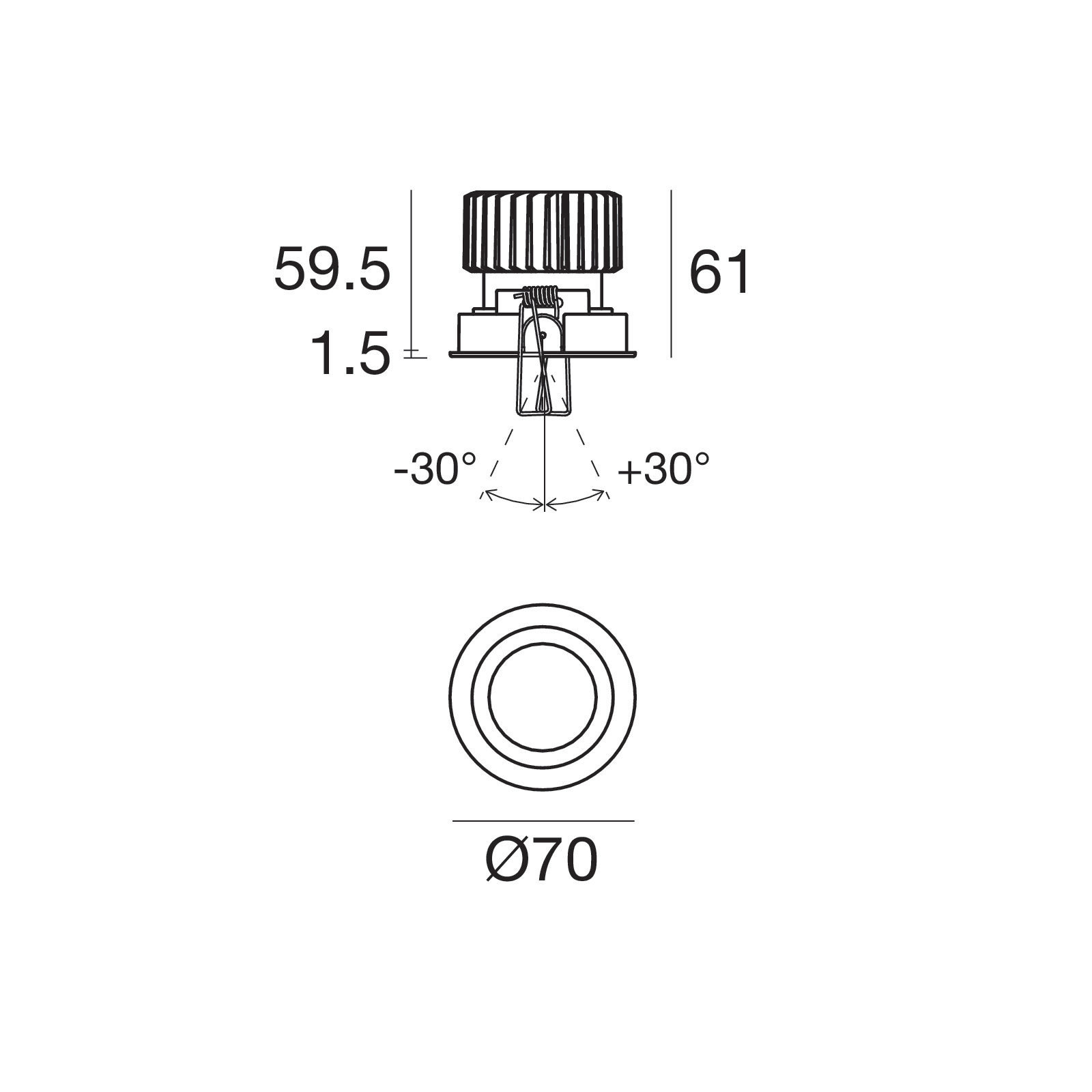 Downlights a singola emissione per applicazione indoor. La sorgente luminosa LED, di colore bianco caldo, con distribuzione luminosa Wide Flood, è composta da 1 LED arrayled, con una CCT 3000 K ed un CRI 80, il flusso luminoso della sorgente è di 1399 lm, con un'efficienza nominale di 127.2 lm/W. Il corpo dell'apparecchio, realizzato in policarbonato, presenta una finitura di colore bianco, ottenuta tramite verniciatura. Il grado di protezione è IP44, il peso complessivo è di 0.3 kg. La potenza assorbita dall'apparecchio è di 13 W. Il cavo per l'alimentazione è incluso e presenta una lunghezza di 0.15 m. L'apparecchio presenta una classe di isolamento II ed è installabile a soffitto, con foro tondo di diametro 66 mm (nel cartongesso). Conforme alla norma EN 60598-1 e alle relative prescrizioni particolari. CAM EDILIZIA: Affidamento del servizio di progettazione di interventi edilizi secondo quanto riportato dal ''decreto 23 giugno 2022'' pubblicato nella ''Gazzetta Ufficiale della Repubblica Italiana'' serie generale n°183 in vigore dal 18/10/2017 rispetta nello specifico i seguenti criteri: 2.4.3: Impianti di illuminazione per interni.