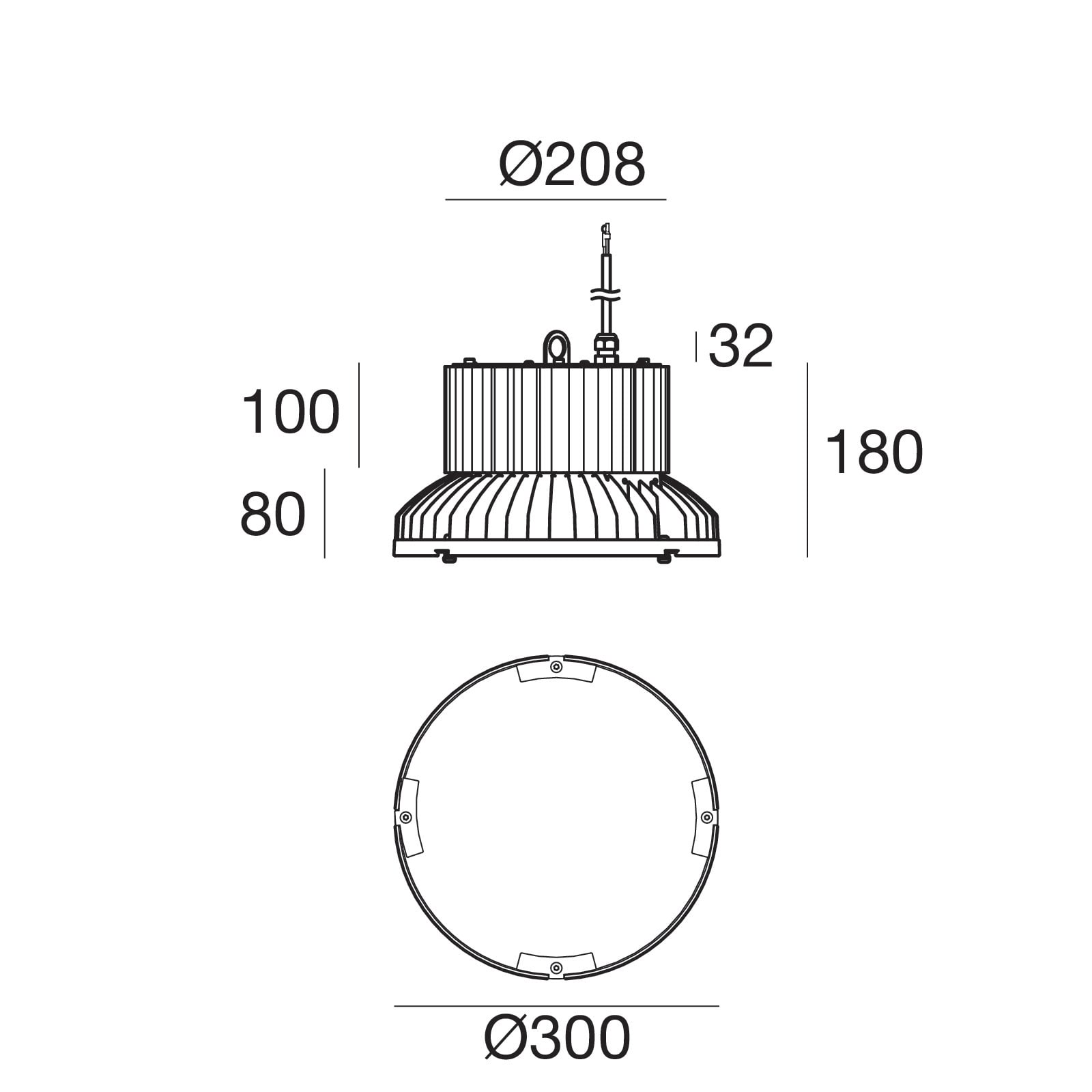 Sospensione a singola emissione per applicazione indoor. La sorgente luminosa LED, di colore bianco naturale, con distribuzione luminosa Wide Flood, è composta da 3 LED arrayled, con una CCT 4000 K ed un CRI 80, il flusso luminoso della sorgente è di 13764 lm, con un'efficienza nominale di 151.3 lm/W. Il corpo dell'apparecchio, realizzato in alluminio, presenta una finitura di colore grigio zirconio, ottenuta tramite verniciatura, il diffusore è prodotto in vetro. Il grado di protezione è IP65, il peso complessivo è di 6.5 kg. La potenza assorbita dall'apparecchio è di 100 W. Il cavo per l'alimentazione è incluso e presenta una lunghezza di 1 m. L'apparecchio presenta una classe di isolamento I ed è installabile a soffitto. Conforme alla norma EN 60598-1 e alle relative prescrizioni particolari. CAM EDILIZIA: Affidamento del servizio di progettazione di interventi edilizi secondo quanto riportato dal ''decreto 23 giugno 2022'' pubblicato nella ''Gazzetta Ufficiale della Repubblica Italiana'' serie generale n°183 in vigore dal 18/10/2017 rispetta nello specifico i seguenti criteri: 2.4.3: Impianti di illuminazione per interni.