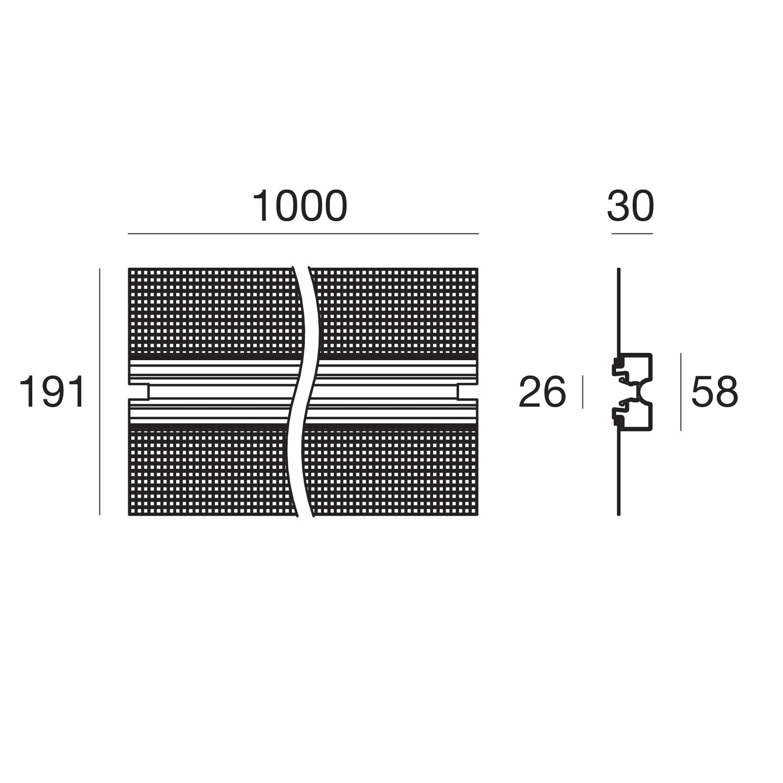 Sistemi a singola emissione per applicazione outdoor. Il corpo dell'apparecchio, realizzato in alluminio, presenta una finitura di colore alluminio anodizzato, ottenuta tramite anodizzazione. il peso complessivo è di 0.97 kg. ed è installabile a soffitto, con foro rettangolare con misura 1000 x 61 mm (nel cartongesso). Conforme alla norma EN 60598-1 e alle relative prescrizioni particolari.
